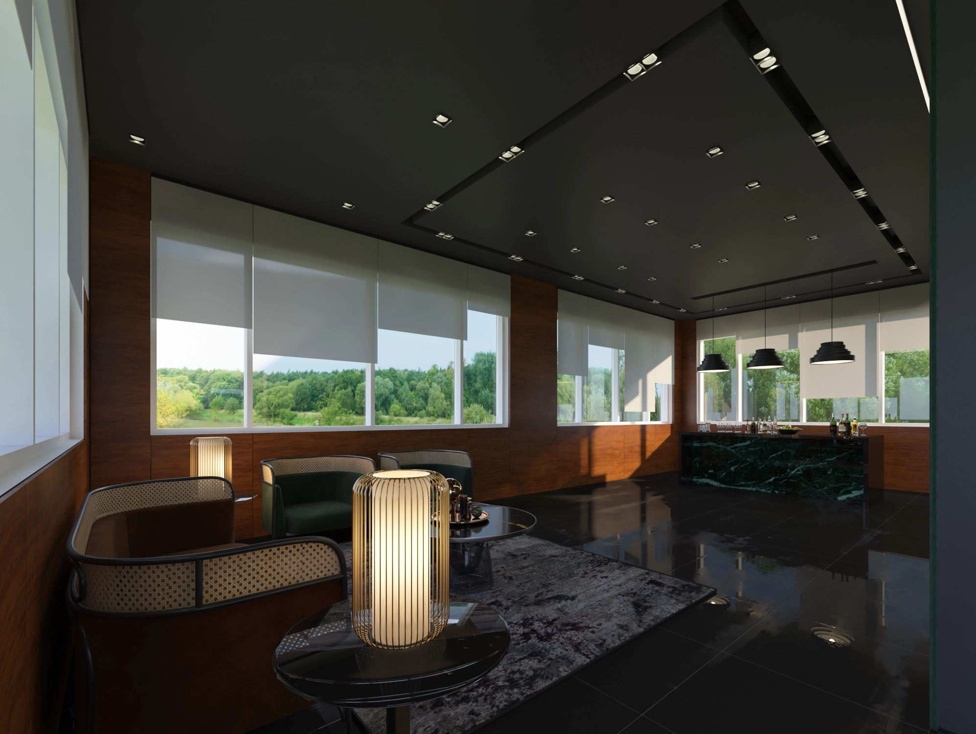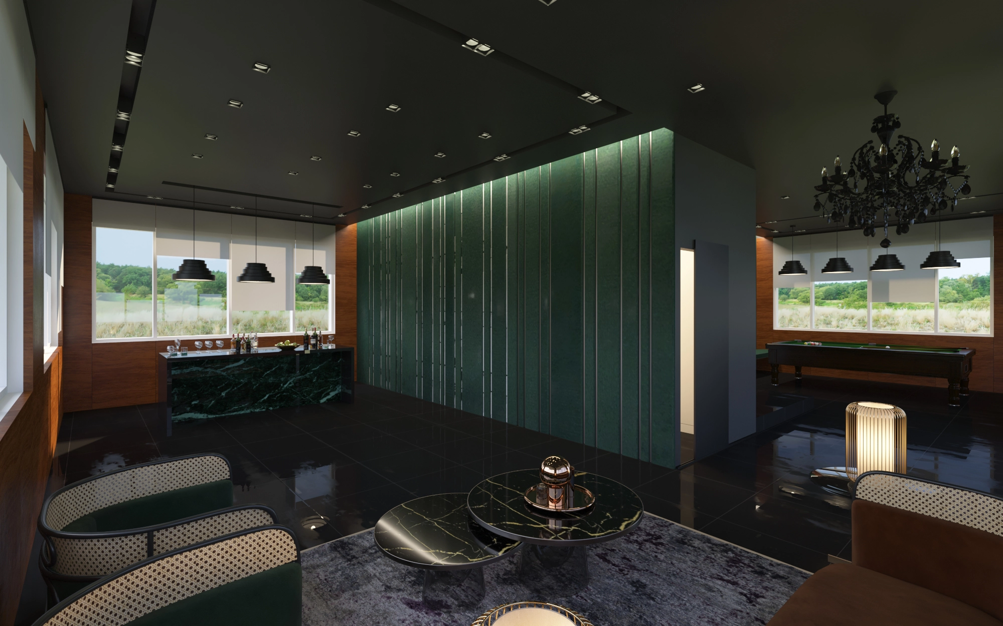 Materials such as walnut wood, green marble, black marble, green velvet, smoky colors, and low, spot lighting. A collection of architectural elements that give the space a sense of intimacy and comfort and are suitable for this space.