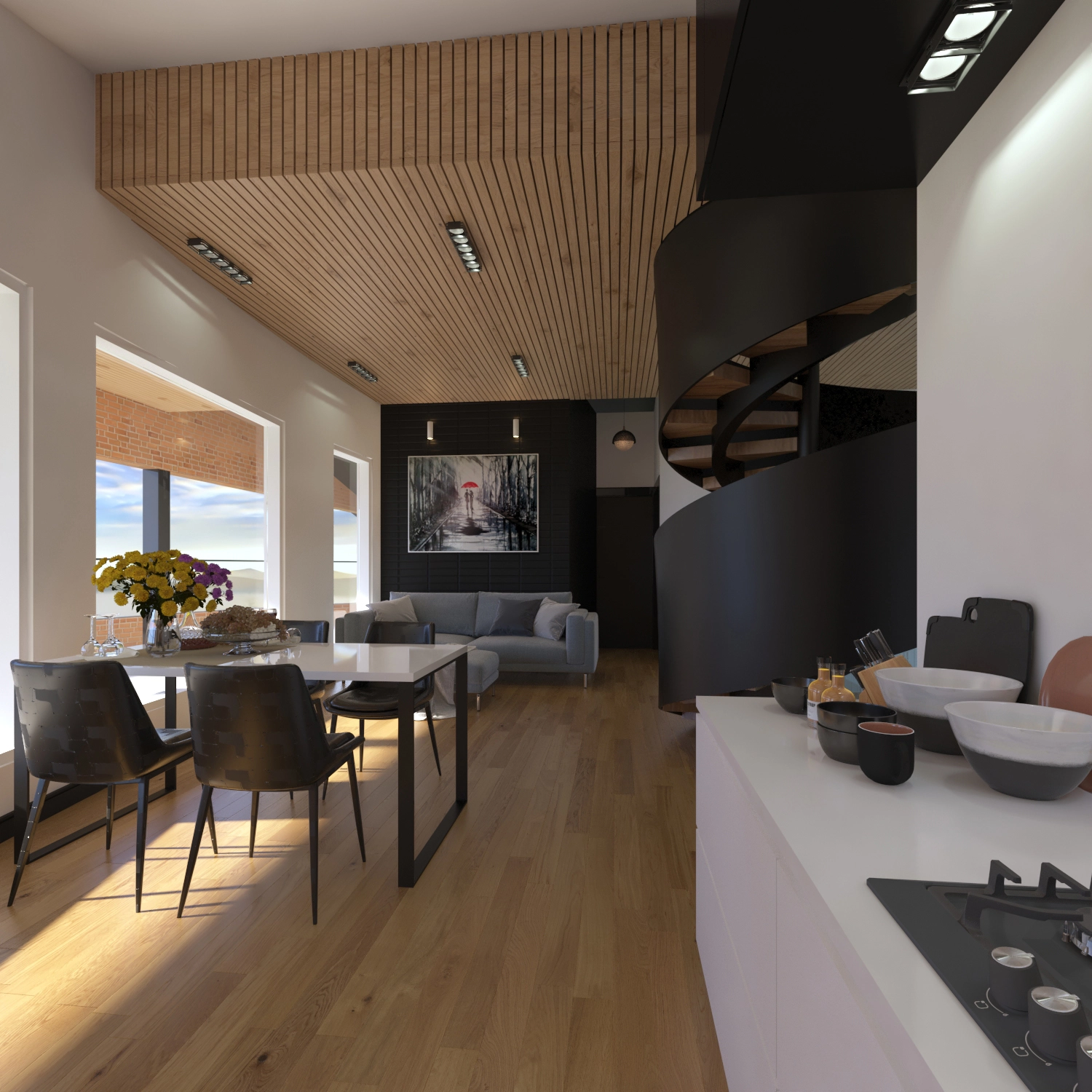 The presence of a small kitchen on this floor, in addition to greater flexibility in using the floors of this house, allows the pleasure of watching the unique northern view from the terrace in winter to be combined with the hearty taste of a hot coffee.