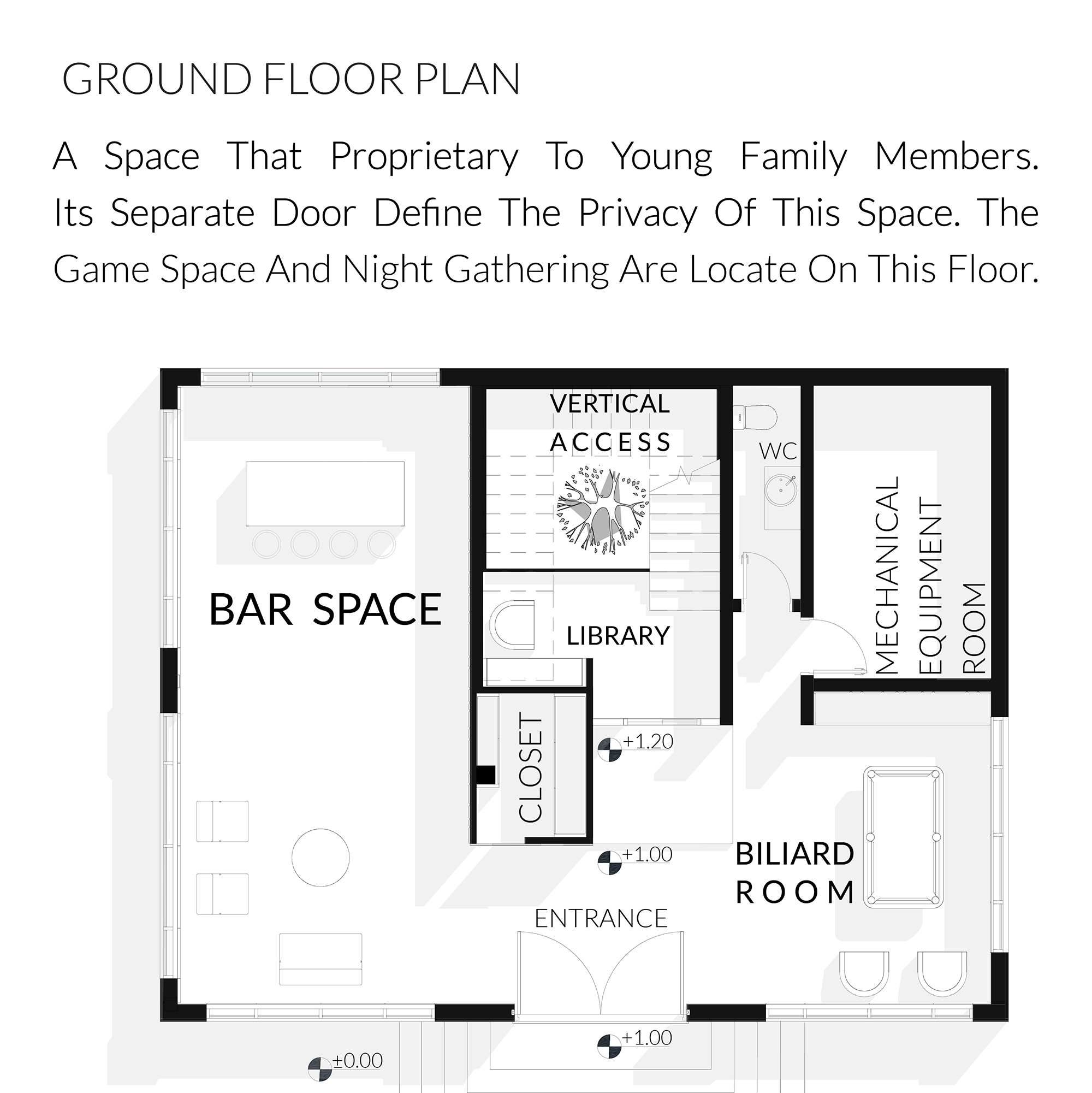Its separate door defines the privacy of this space. The play area and evening gatherings are located on this floor.